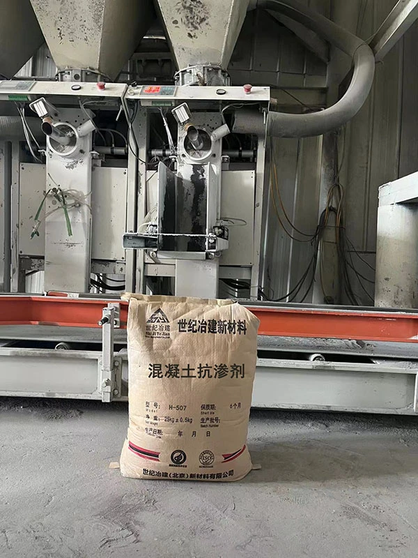 混凝土抗渗剂采用复合牛皮纸袋包装,40kg/袋,推荐掺量4~6%。